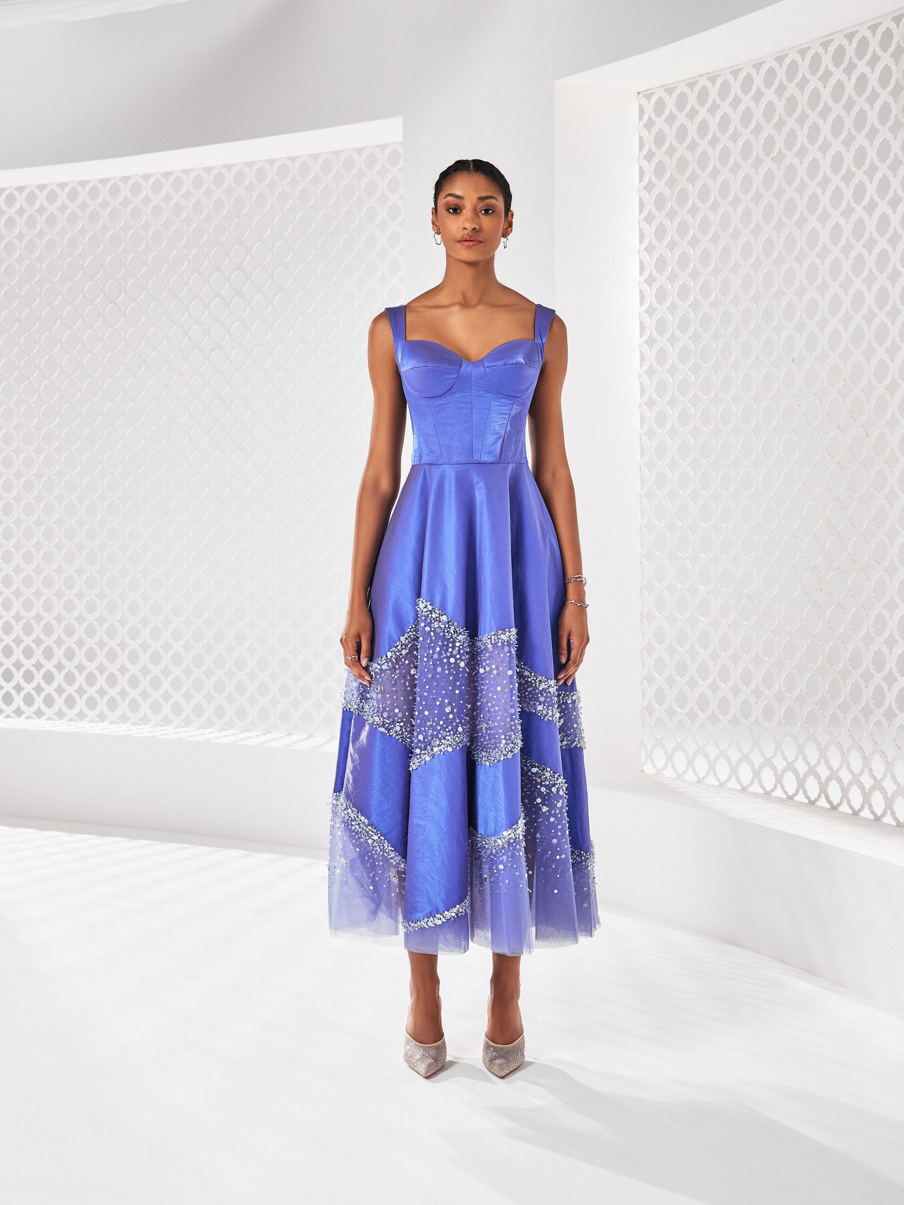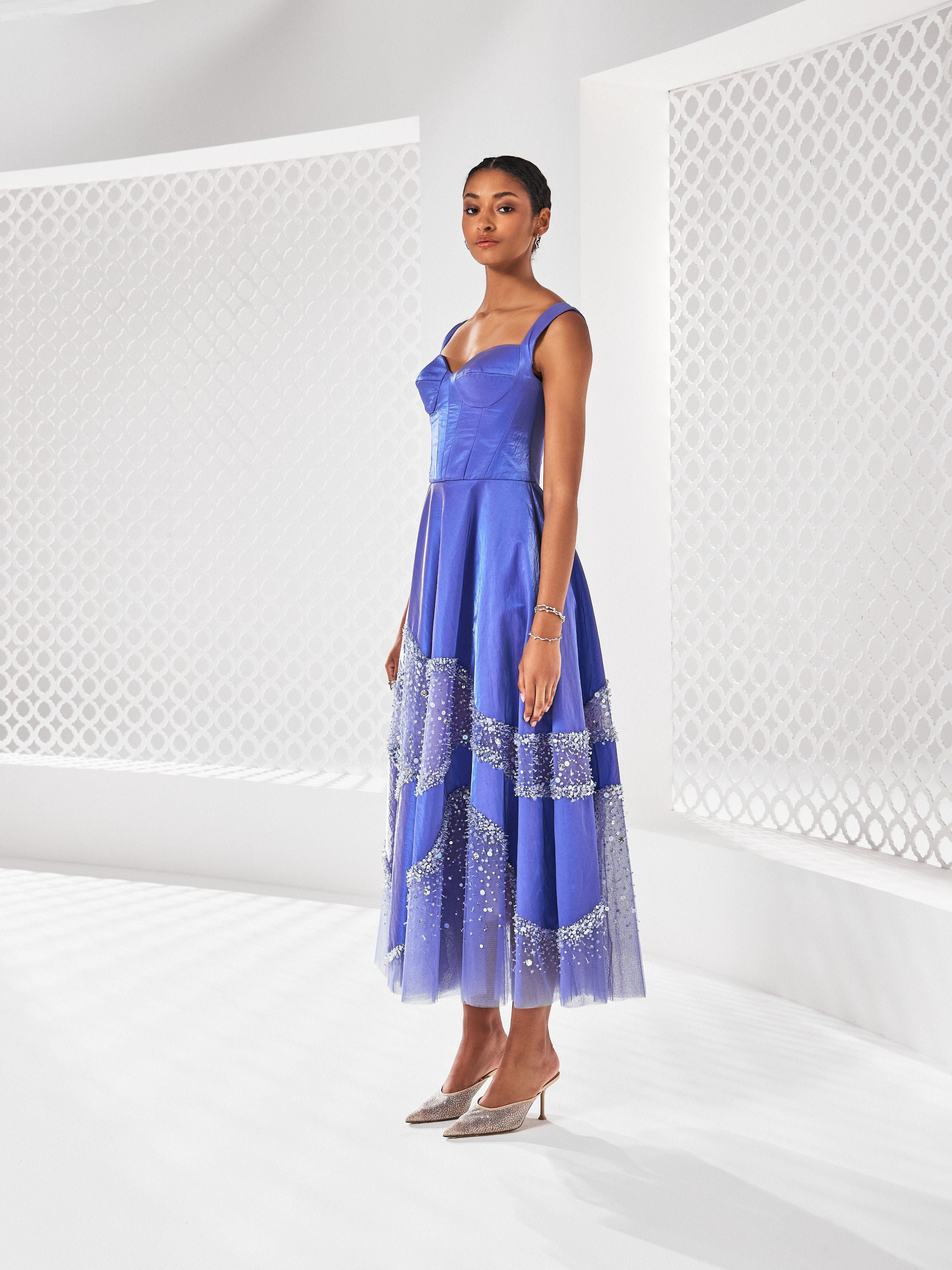 Bodice Fit Corset With Flared Asymmetrical Tulle Embellishment