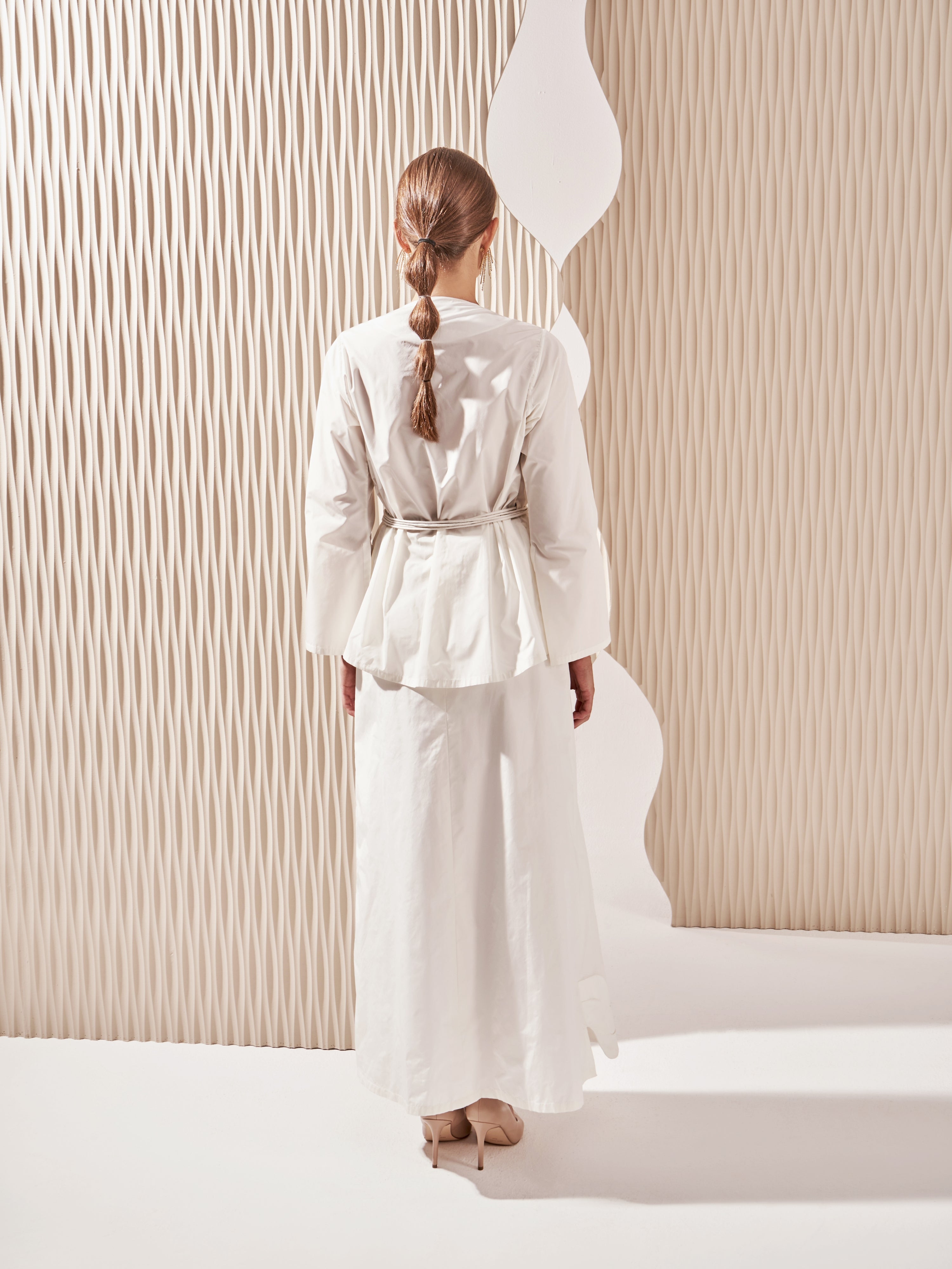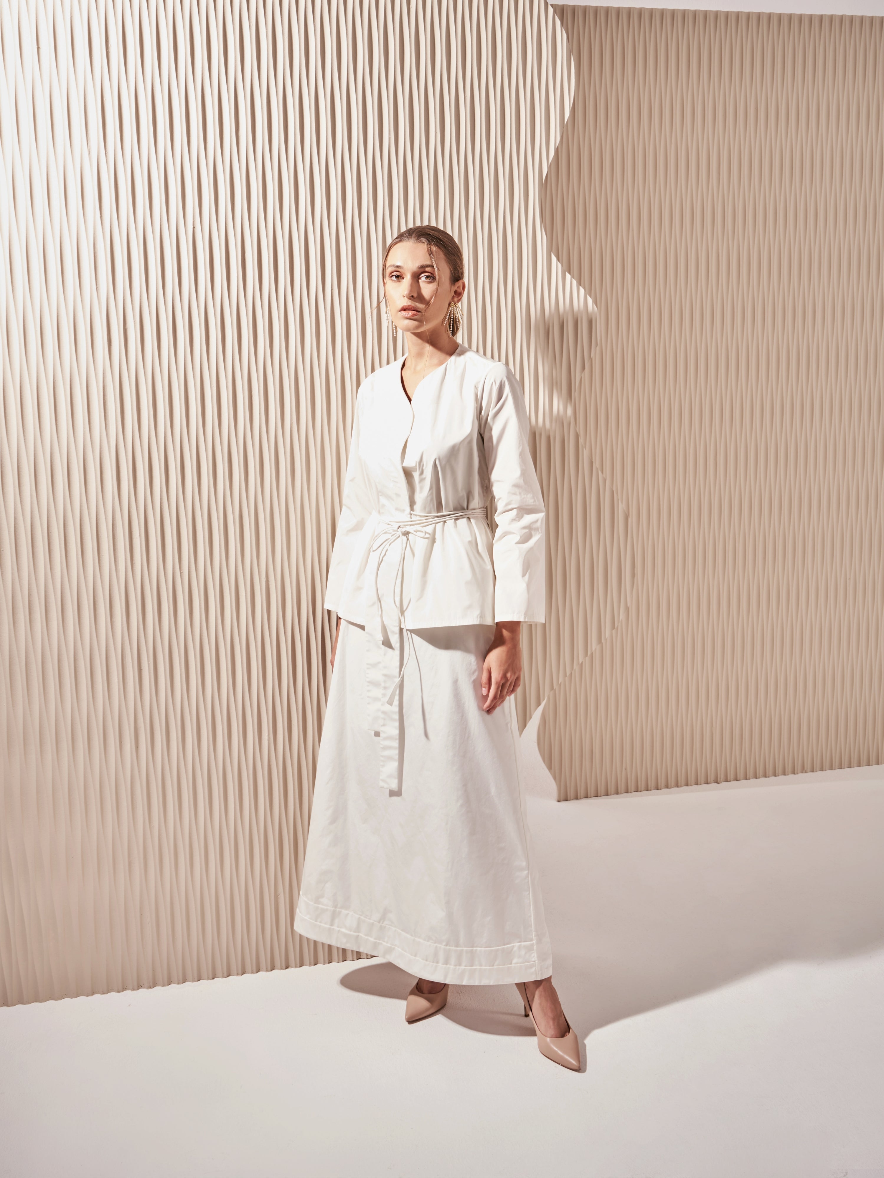 OVERLAPPING ROPE TIED TO WITH AN A-LINE SKIRT