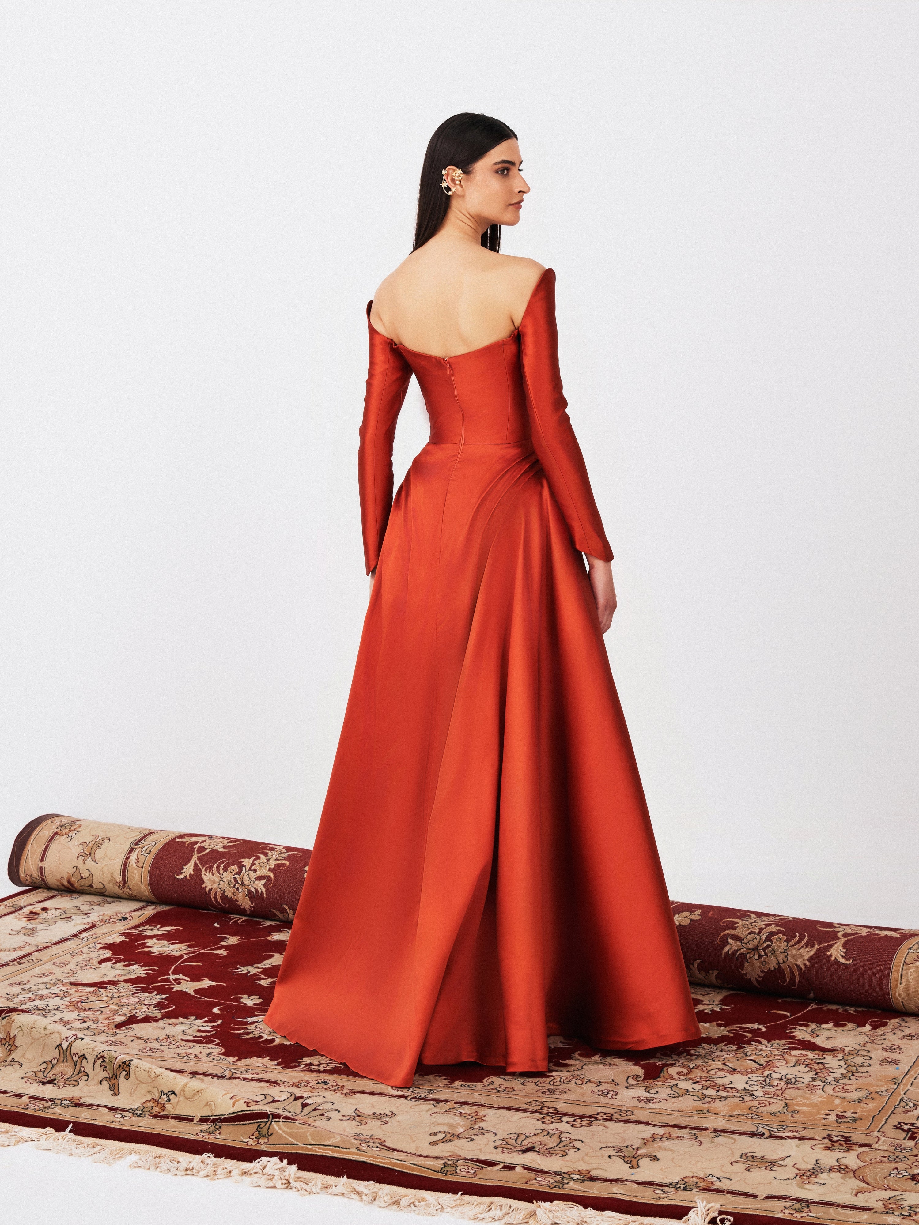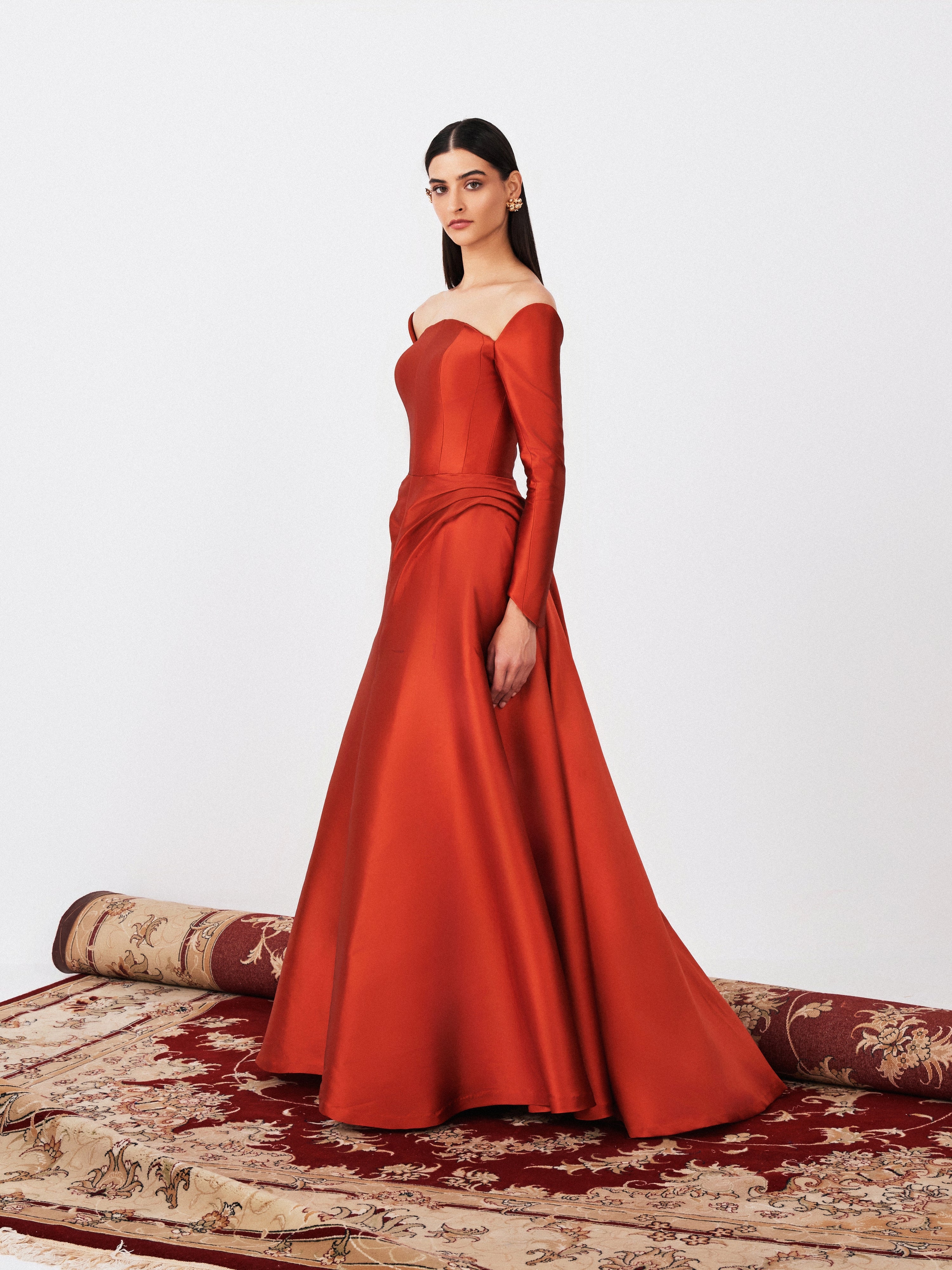 Off-Shoulder Mikado Gown With Draping Details On The Hips